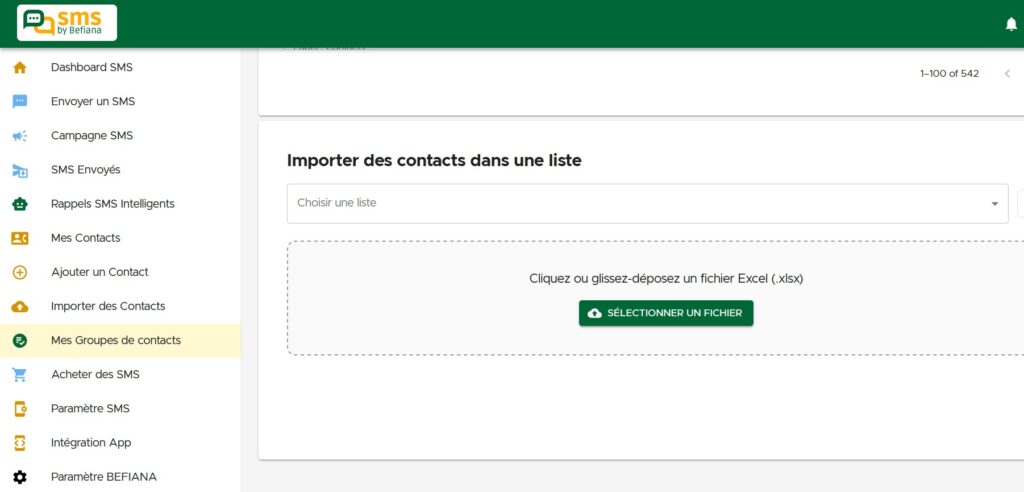 Chaque fichier peut être importé séparément dans sa liste correspondante pour une gestion plus simple et une meilleure performance de vos campagnes SMS.
